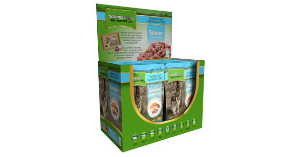 Lower in protein than the active adult varieties to suit a more senior life style as your dog reaches its wiser days in life, when chasing around isn’t top of the agenda. Natures Menu products are designed to deliver your pets’ requirements from naturally balanced raw materials. Natures Menu don’t use the chemicals, additives or preservatives often found in over-processed pet foods.